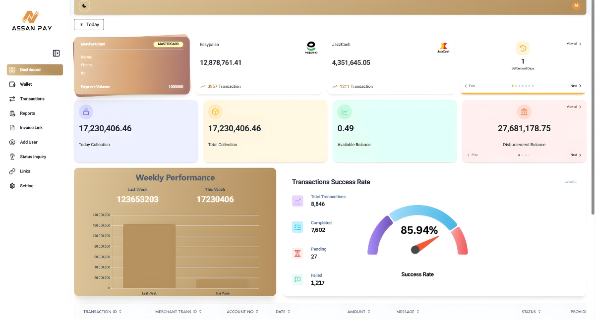 With the ASSANPAY Business Portal, your centralized location for handling transactions, settlements, and automated reconciliations, you can acquire total financial control. The portal, which offers end-to-end visibility across all transparent payment transactions and payment flow, was created with enterprise precision in mind.